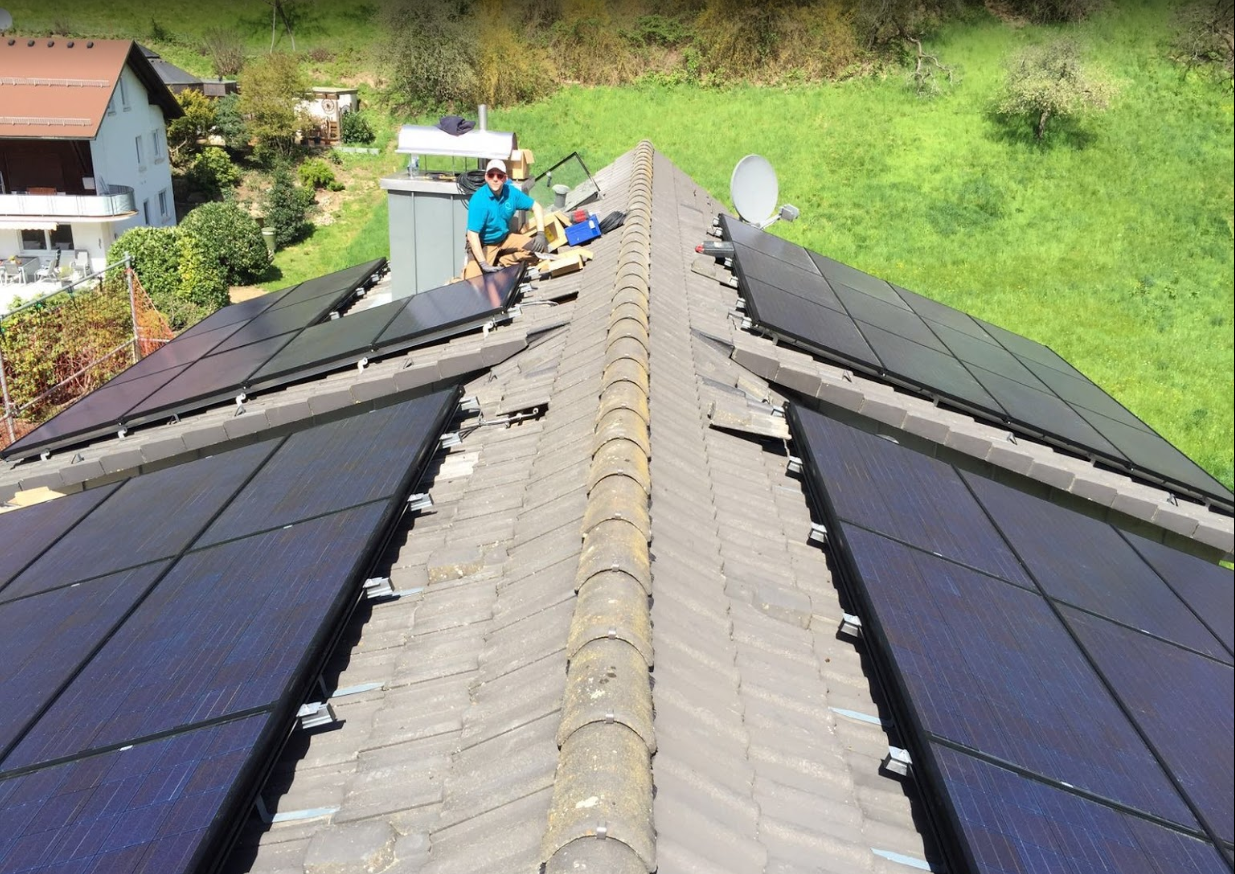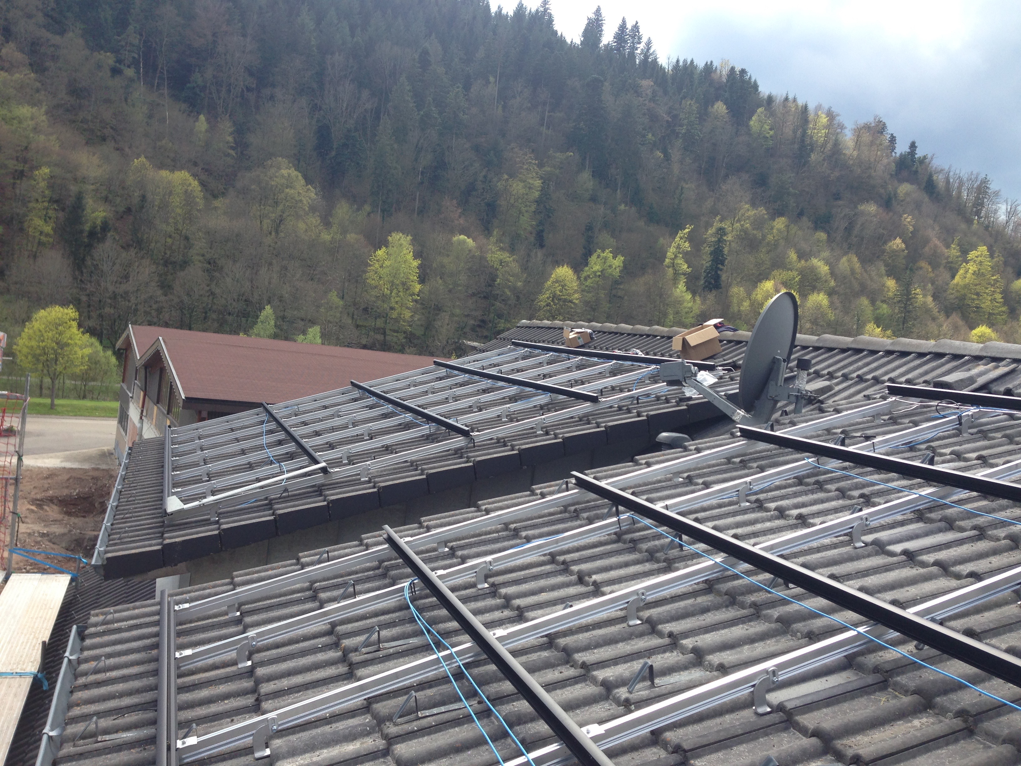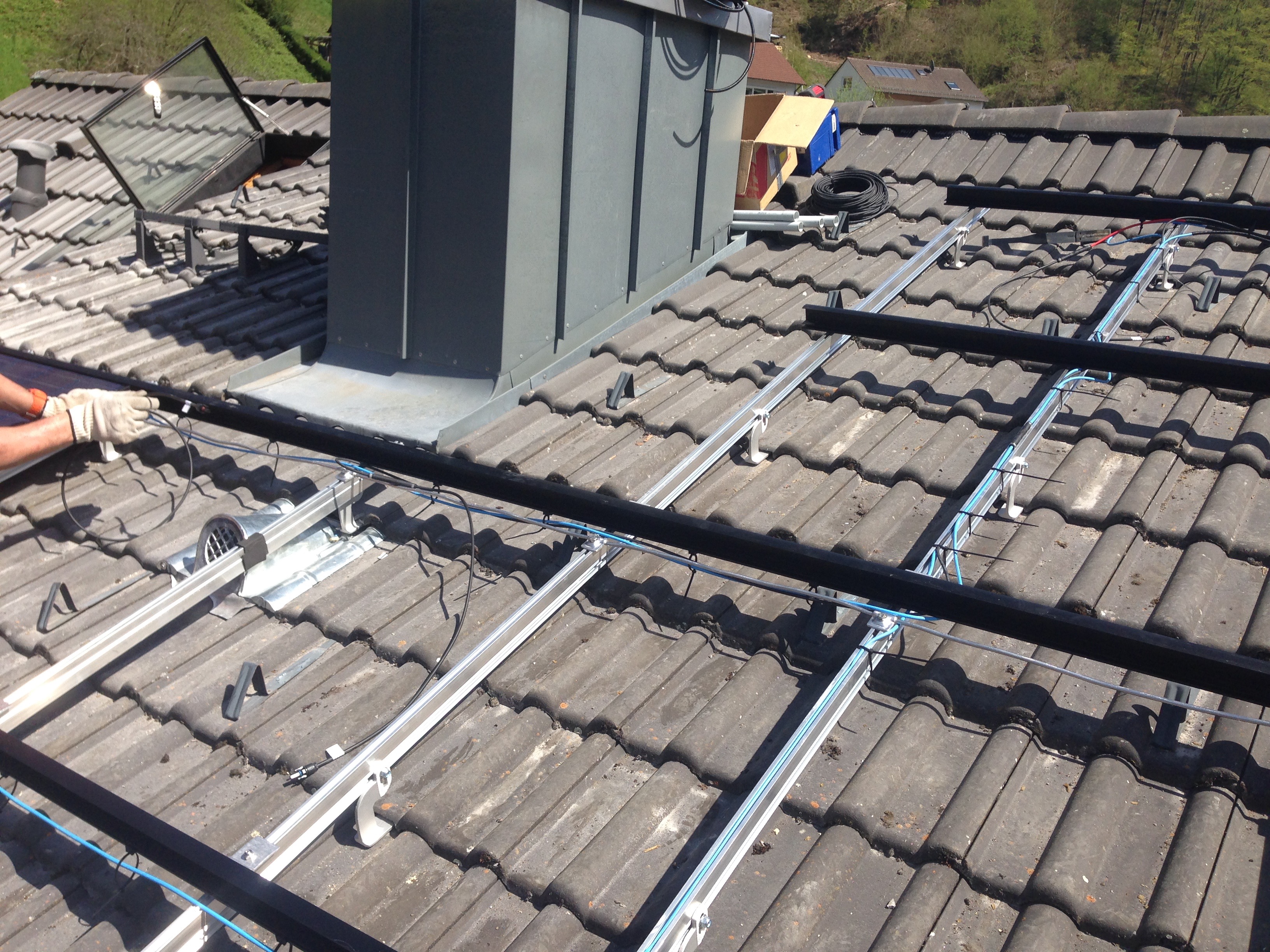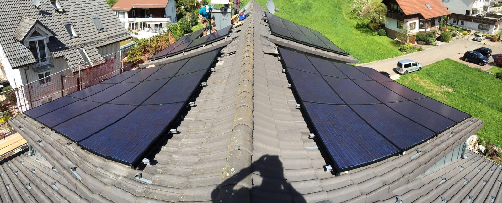 Die Lösung fand sich in den insgesamt 44 Solarmodulen der so genannten 54 Zeller - Solarmodule mit 54 statt 60 Zellen. Davon wurden 24 auf der Ostseite und 20 auf der Westseite verbaut. Durch den Kamin auf der Westseite konnten nur 9,9 kWp Modulleistung verbaut werden. Ein zusätzlicher Vorteil für den Kunden bildete das Erneuerbare-Energien-Gesetz, das eine maximale Leistung von 10 kWp vorschreibt, somit fielen keine Abgaben an die Erneuerbare-Energien-Gesetz Umlage an.